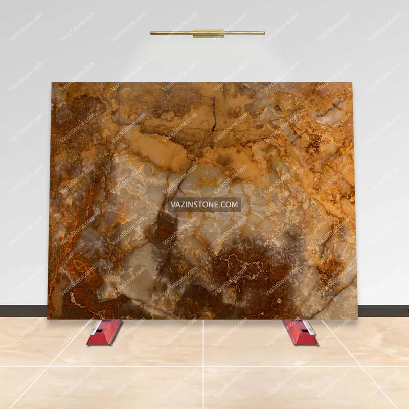 يُعد اللوح البرتقالي – المائل إلى البرتقالي الغامق – خيارًا جذابًا لجدران لوبيات الفنادق، القاعات، المباني الفاخرة، كاونترات الحجر، إطارات المصاعد الحجرية، وغيرها من الاستخدامات المشابهة. في الصورة أدناه يمكنكم مشاهدة نموذج منه.