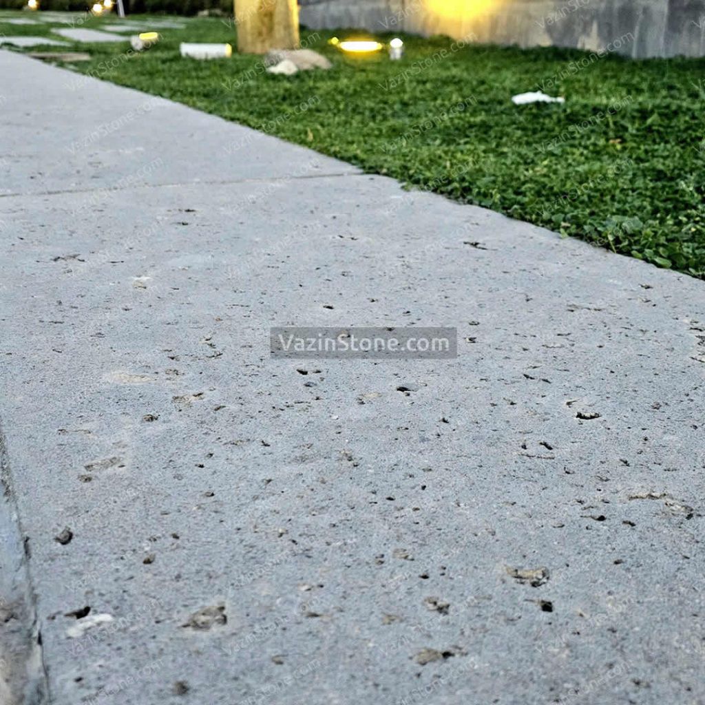 تراورتن تیشه ای به دلیل داشتن سطحی زبر و مقاومت در برابر شرایط جوی، گزینه ای مناسب برای کف پوش های خارجی است. تراورتن با رنگها و طرح های متنوع، زیبایی خاصی به محیط می دهد.