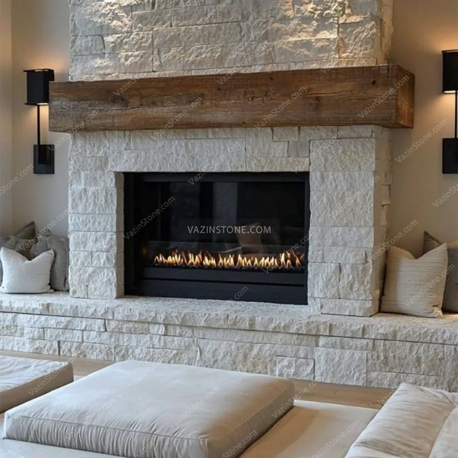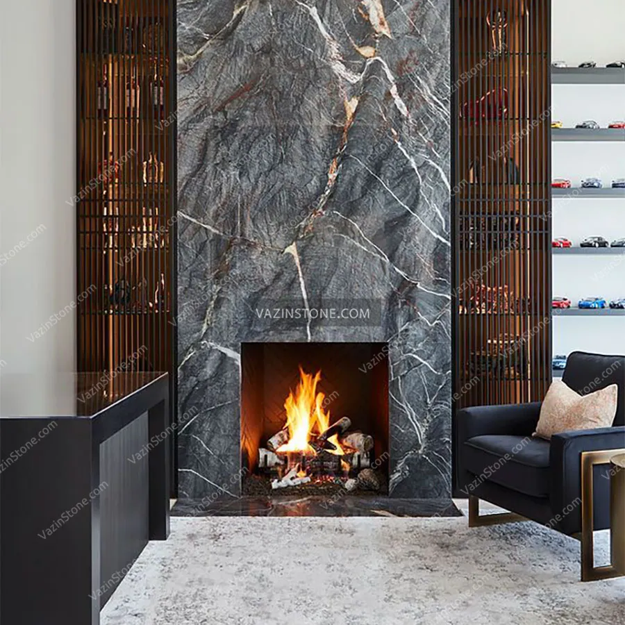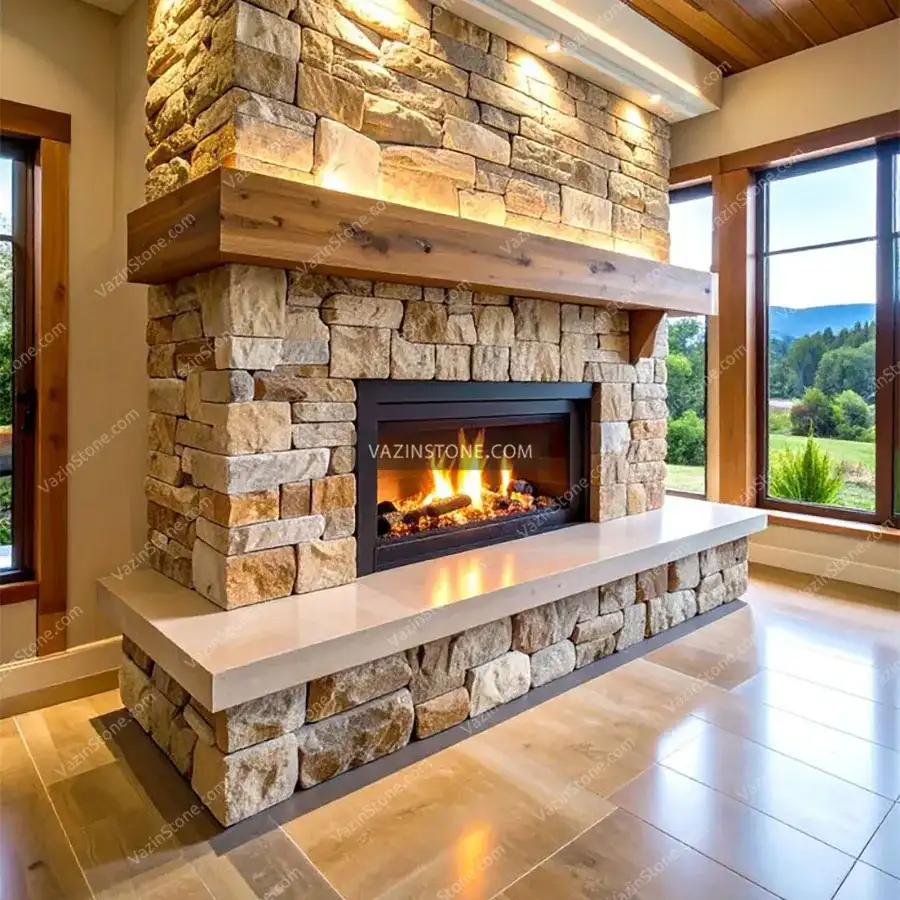 شومینه سنگی همچنان جایگاه ویژهای در طراحی داخلی دارند و از المانهای محبوب سال ۱۴۰۴ محسوب میشوند. برای قاب شومینه معمولاً از سنگهای مقاوم در برابر حرارت مانند گرانیت، تراورتن و مرمریت استفاده میشود. در طراحیهای مدرن، از اسلبهای بزرگ برای ایجاد نمایی پیوسته و یکدست در دیوار اطراف شومینه استفاده میشود تا فضایی شیک و یکپارچه ایجاد شود.