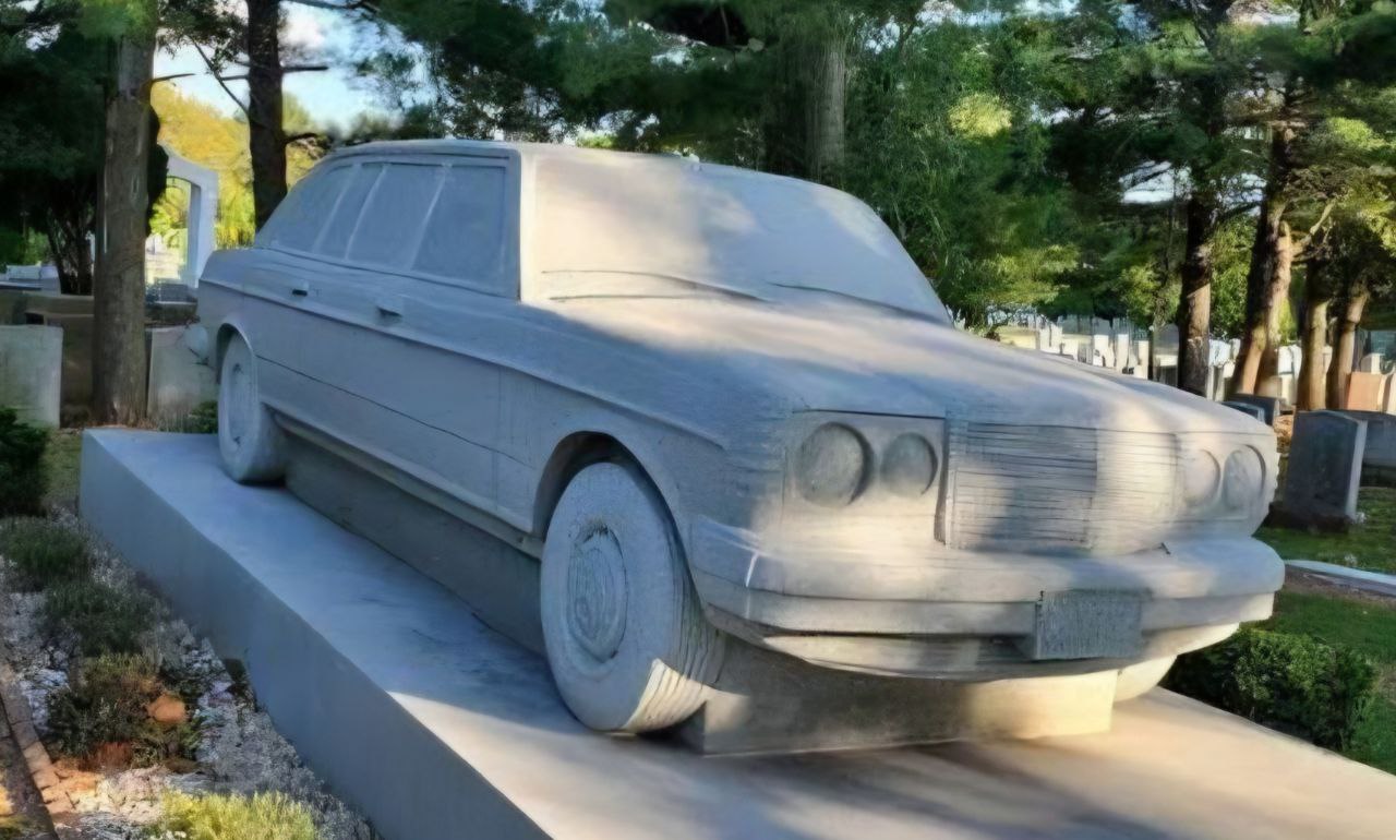 یکی از عجیب ترین سنگ قبر های دنیا، ماشین بی ام و (BMW) ای است که در تصویر زیر مشاهده میکنید. این ماشین در واقع سنگ قبر فردی است که طرفدار دو آتیشه ماشین بود. زمانی که او فوت می کند، خانواده اش تصمیم میگیرند سنگ قبری به شکل بی ام، مدل کانورتیبل که خودرو مورد علاقه او بود، انتخاب کنند. این مجسمه ۱ تنی که با حضور و کمک ۲۰ نفر روی سنگ قبر قرار گرفت، حدود ۵۰ هزار پوند هزینه داشت. جنس این مجسمه از سنگ گرانیت می باشد.