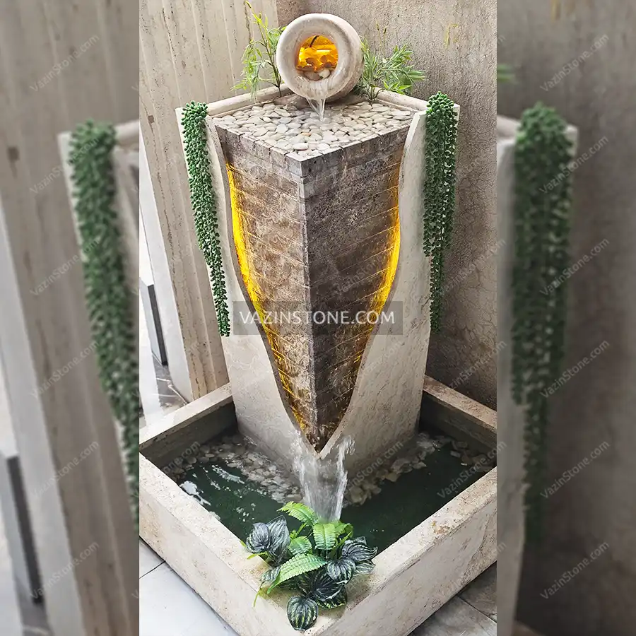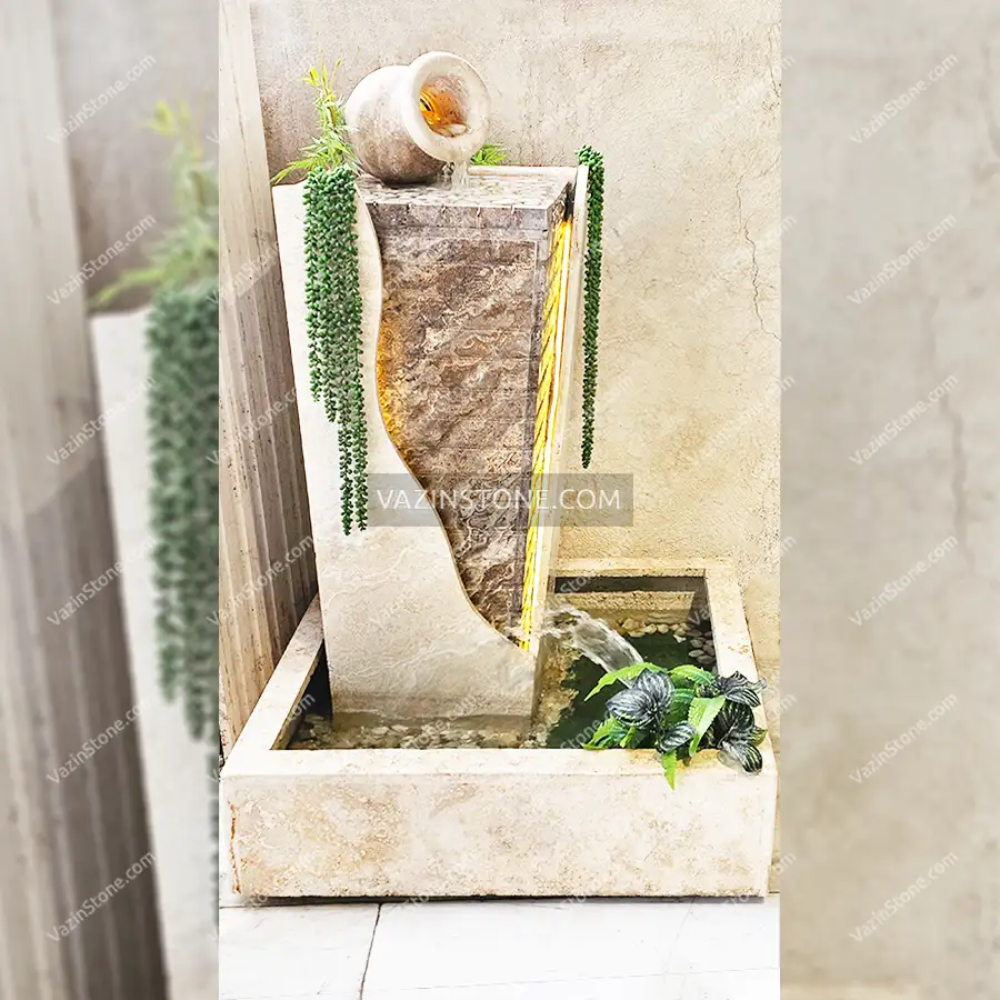 • جنس سنگ این آبنما آماده از تراورتن است که مقاومت خوبی در برابر رطوبت، سرما و گرما خواهد داشت.