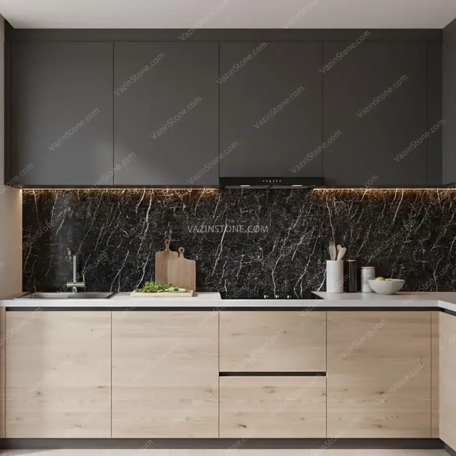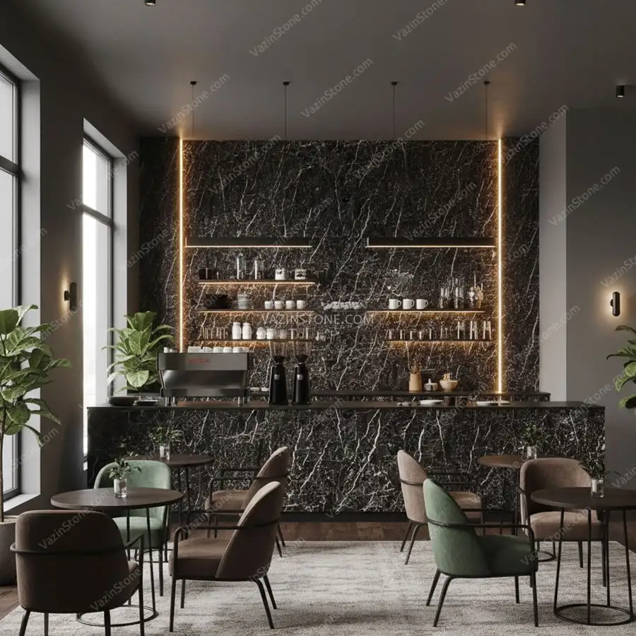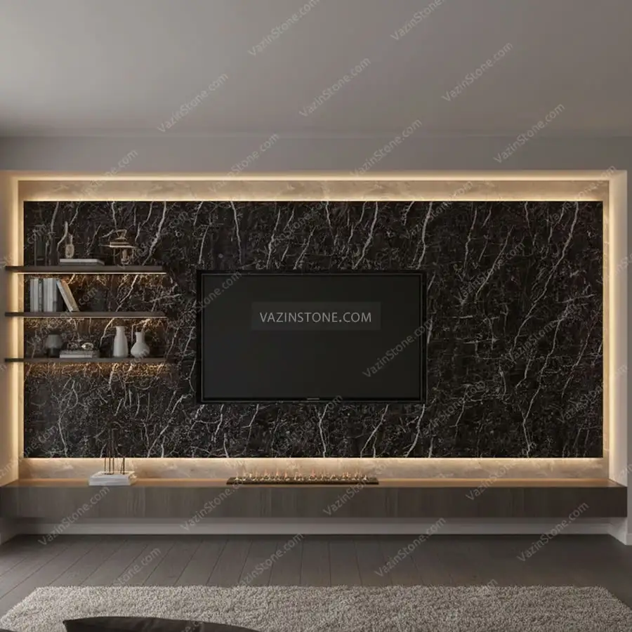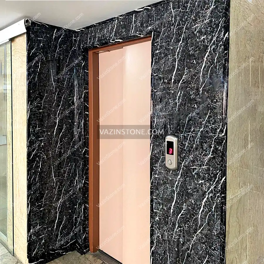 - همچنین می توان از دیوار پوش ماربل شیت مرمریت مشکی به صورت اسلب نیز استفاده نمود.