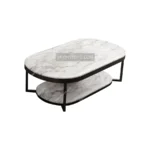 میز جلو مبلی سنگی کلاریس با طراحی بیضی شکل و ساختاری دو طبقه، ترکیبی از زیبایی، کارایی و دوام را در یک محصول مدرن ارائه میدهد. از سنگ چینی طبیعی در ساخت رویه این میز جلو مبلی استفاده شده است. رگه های طوسی سنگ در کنار درخشش زمینه سفید آن، نمایی آرام و زیبا به فضا میبخشد. بدنه آهنی با پوشش مشکی کورهای، پایه هایی مستحکم و ظریف را پدید آورده که فرم کلی میز را تکمیل کرده و تعادل بصری زیبایی خلق کرده است. طراحی دو طبقه این میز، فضای بیشتری برای استفاده روزمره فراهم میکند. ترکیب این میز سنگی مدرن با میز عسلی های ساخته شده از سنگ و آهن، جلوه هارمونیک خاصی ایجاد خواهد کرد.