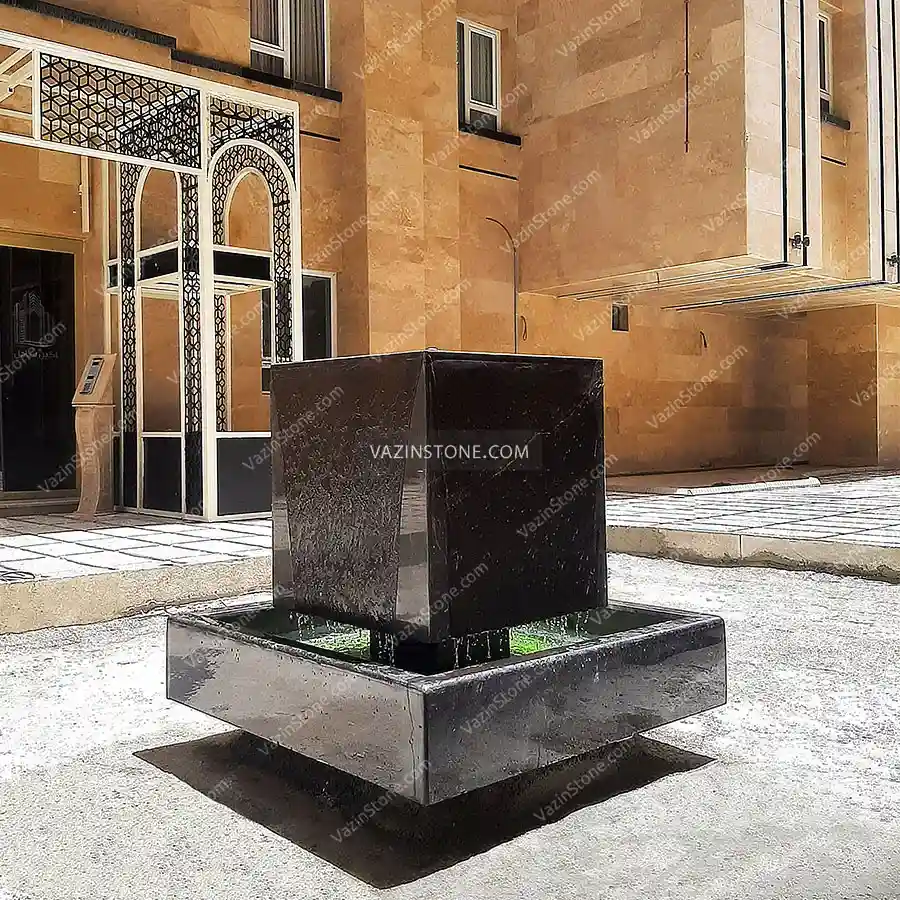 آبنما سنگی طرح مکعب معلق همانطور که از نامش بر می آید، دارای قالب ظاهری مکعبی شکل میباشد. جریان آب از طریق حفره دایره‌ای شکل قسمت بالا بر روی ستون مکعبی و سپس داخل حوض سرازیر می‌شود. نکته‌ی مهم درباره‌ی این آبنما آماده، سرریز آب به صورت یکسان از هر چهار ضلع مکعبی ستون می باشد که صدای آرامبخشی ایجاد می کند. رنگ مشکی این آبنما سنگی یک سبک کاملا مدرن به این سازه بخشیده و از این رو بهترین گزینه برای طراحی‌های با این سبک محسوب می‌شود.