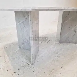 - میز ناهارخوری سنگی با زمینه رنگی سفید و رگه های خاکستری رنگ طبیعی.