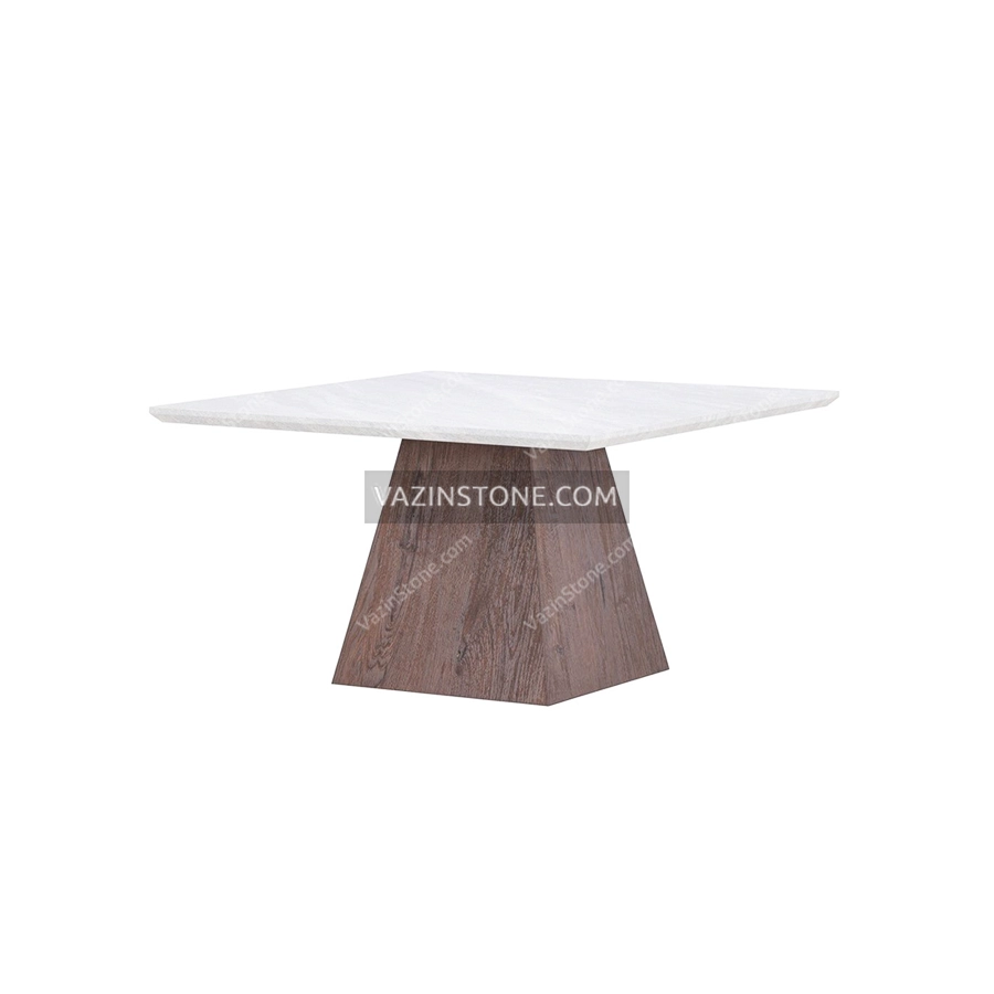 میز ناهار خوری رسا جلوهای متعادل و آرام به فضای غذاخوری میبخشد. رویه سنگی مربع شکل این میز که قابلیت اجرا با سنگ تراورتن یا سنگ چینی را دارد، سطحی صاف، یکدست و مقاوم ایجاد کرده و در کنار پایه چوبی ذوزنقهای، ترکیبی هماهنگ از متریالهای طبیعی را به نمایش میگذارد. پایه مرکزی چوبی با فرم ذوزنقهای و اتصال دقیق به صفحه سنگی، علاوه بر ایجاد ثبات بالا، جلوه مدرن و متمایز به میز ناهار خوری مربع بخشیده است. این طراحی باعث میشود میز رسا هم از نظر بصری زیبا به نظر برسد و هم از نظر عملکردی کاملاً کاربردی باشد.