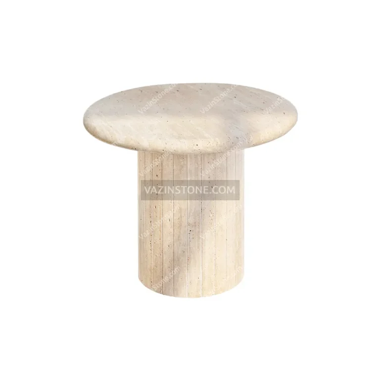 - طراحی شیارهای عمودی ظریف بر روی پایه میز سنگی که ترکیب ساده هندسی و حس معماری مدرن به آن میدهد.