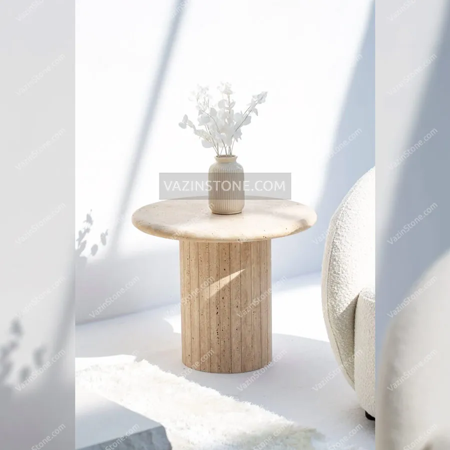- میز عسلی ریما با زمینه رنگی کرم و بافت طبیعی سنگ تراورتن.