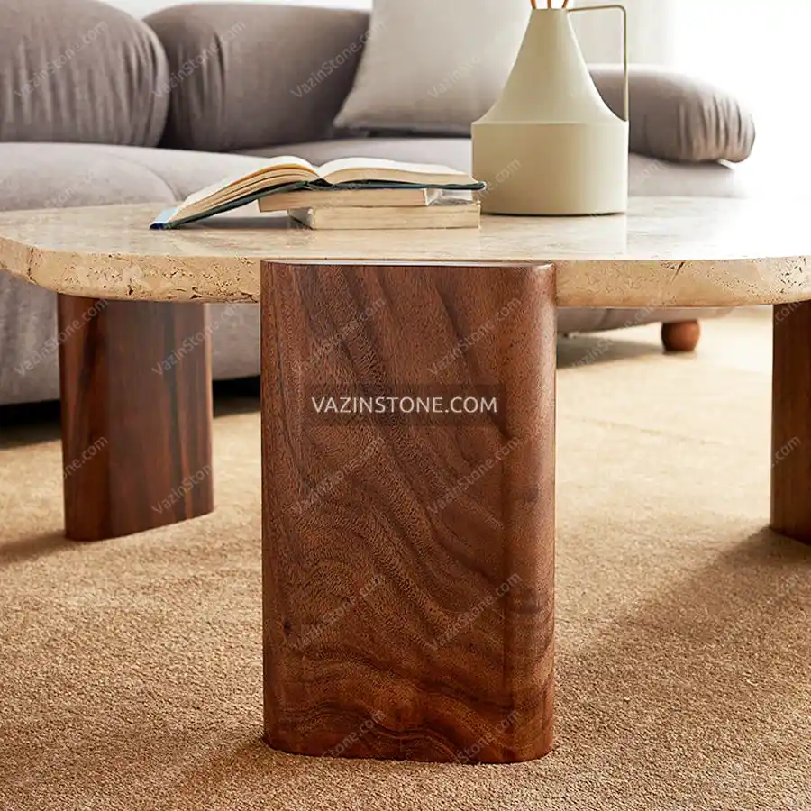 - امکان ترکیب متریال های سنگ،چوب و شیشه در طراحی این میز جلو مبلی.