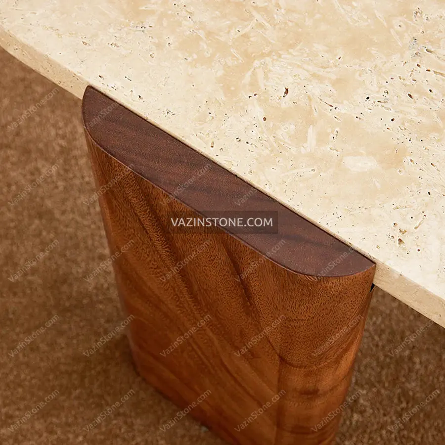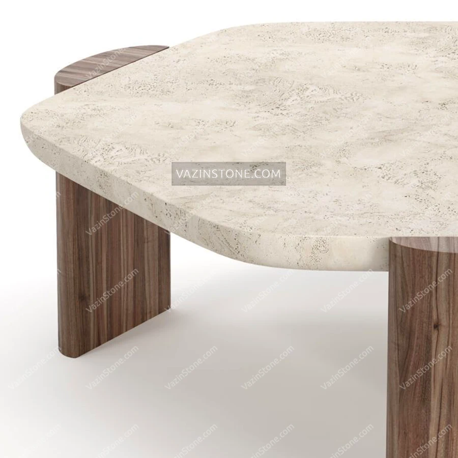 - میز سنگی با پایه چوبی.