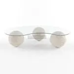 میز جلو مبلی ستیا در سه مدل متفاوت عرضه می شود. طراحی این محصول از مجموع سه گوی سنگی به همراه رویه شیشه ای تشکیل شده است. طرح هر سه مدل این محصول یکسان بوده و تنها جنس پایه های سنگی آن متفاوت می باشد. از سنگ مرمریت مشکی نجف آباد، سنگ تراورتن کرم و سنگ تراورتن شکلاتی در ساخت این میز جلو مبلی استفاده می شود. رویه شیشه ای منحنی شکل این میز بر روی سه پایه سنگی آن قرار می گیرد. این میز جلو مبلی با طراحی منحصر به فرد خود در سالن های پذیرایی، تی وی روم و دکوراسیون هایی با سبک مدرن و فانتزی کاربرد دارد.