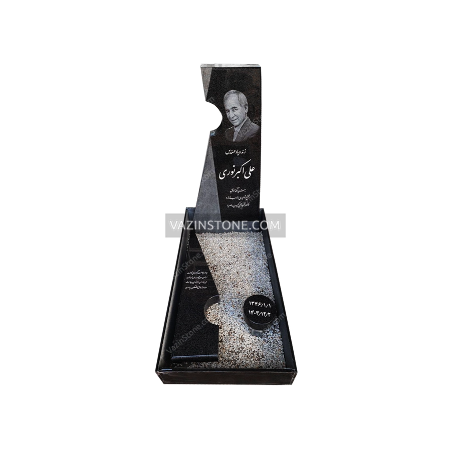• کتیبه‌ی ایستاده و سنگ مزار خوابیده ساخته شده از سنگ گرانیت مشکی