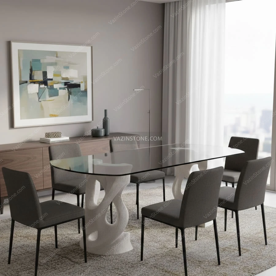 - میز ناهار خوری مدرن دارای طراحی پایه دو تکه با ساختاری خاص و جذاب